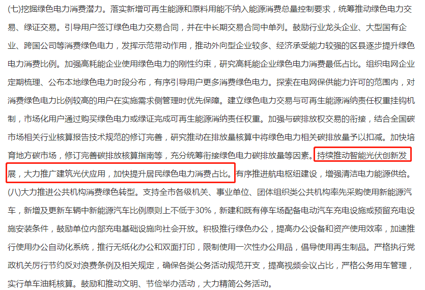 5月5日,重慶市發(fā)改委在《重慶市促進(jìn)綠色消費實施方案(征求意見稿)》同樣提到,持續(xù)推動智能光伏創(chuàng)新發(fā)展,大力推廣建筑光伏應(yīng)用,加快提升居民綠色電力消費占比。