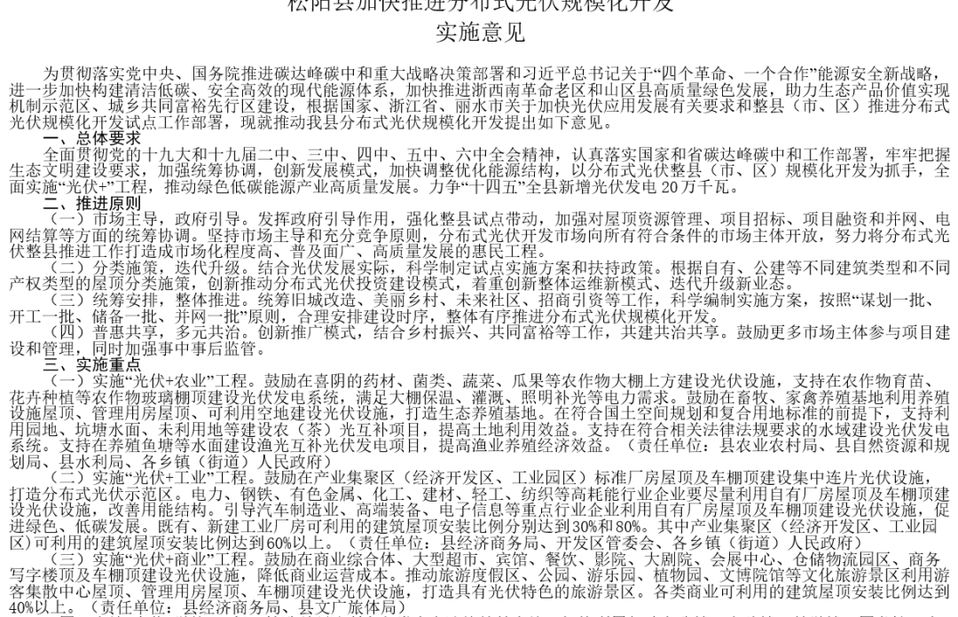7月11日,松陽政府網(wǎng)發(fā)布“《松陽縣加快推進(jìn)分布式光伏規(guī)?;_發(fā)實(shí)施意見》”。