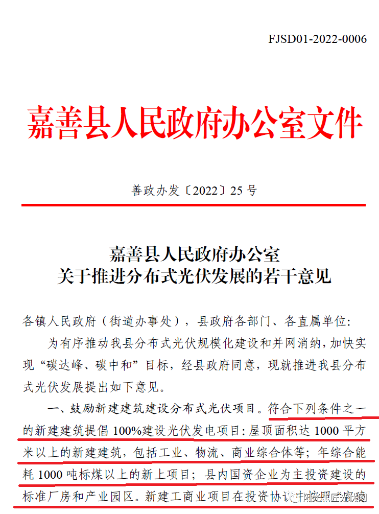 符合下列條件之一的新建建筑提倡100%建設(shè)光伏發(fā)電項目:屋頂面積達1000平方米以上的新建建筑,包括工業(yè)、物流、商業(yè)綜合體等;年綜合能耗1000噸標煤以上的新上項目;縣內(nèi)國資企業(yè)為主投資建設(shè)的標準廠房和產(chǎn)業(yè)園區(qū)。