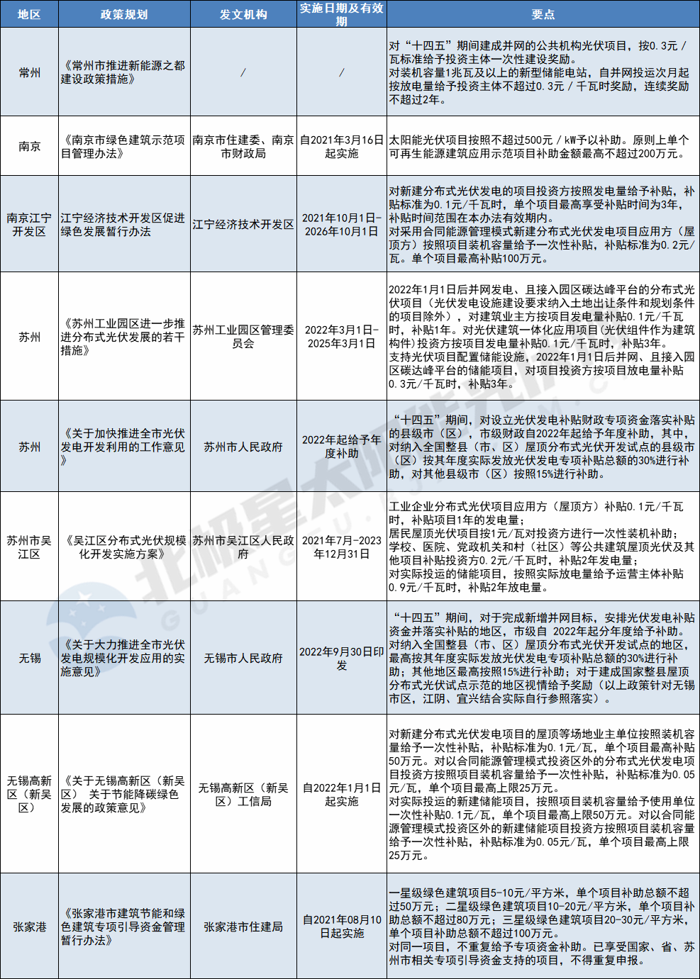 江蘇省工商業(yè)光伏蓬勃發(fā)展的背后,離不開市場內(nèi)需的推動以及利好政策的加持。據(jù)悉,截至目前江蘇常州、南京、蘇州、無錫、張家港等多個市區(qū)依舊給予光伏項目度電補貼或初裝補貼。