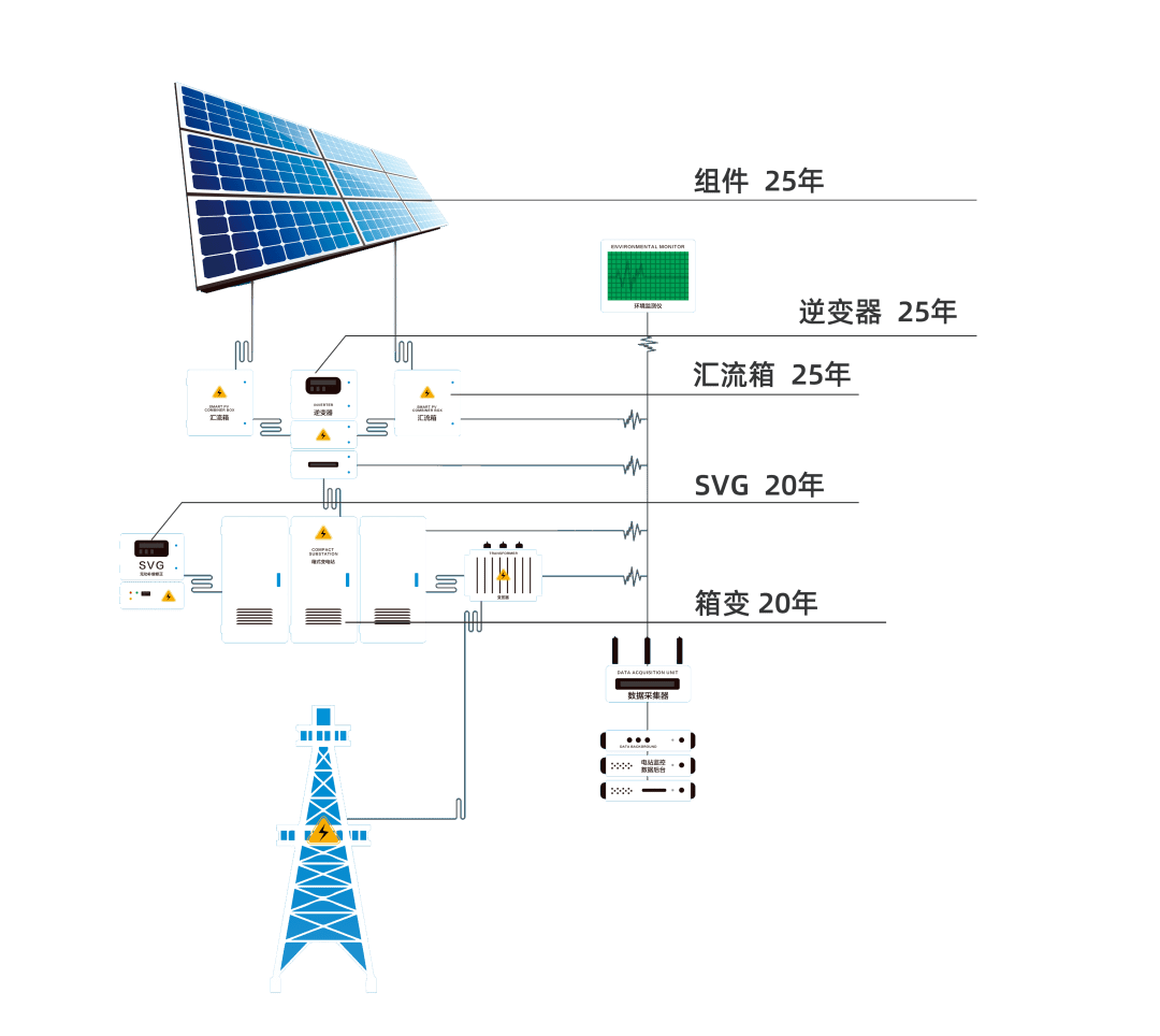 從圖中不難看出,電站主要設(shè)備的設(shè)計(jì)壽命均在20-30年不等,而通過適當(dāng)?shù)倪\(yùn)維,還可以進(jìn)一步延長(zhǎng)光伏系統(tǒng)的生命周期。