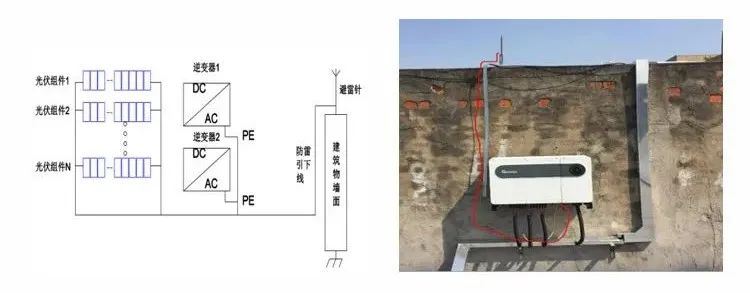 a:逆變器的PE接地與防雷帶直接連接在一起。